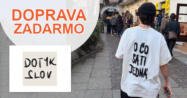 Nakupujte výhodnejšie a ušetrite aj na doručení! Kde? No predsa v originálnom e-shope na DotykSlov.sk, kde môžete získať dopravu zadarmo k nákupu nad 50 eur. Kúpte si originálne tričko, mikinu alebo iný módny doplnok, prípadne ním obdarujte niekoho blízkeho a šetrite na doprave. Užite si pohodlné online nakupovanie na DotykSlov.sk bez poplatku za dopravu!