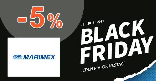 Nezmeškajte teraz výhodný BLACK FRIDAY a ušetrite už dnes! V eshope Marimex.sk môžete ušetriť pri nákupe sáun a detských ihrísk až -5%. Stačí ak pri nákupe využijete tento špeciálny zľavový kód priamo v nákupnom košíku. Ponuka platí do 30.11.2021.